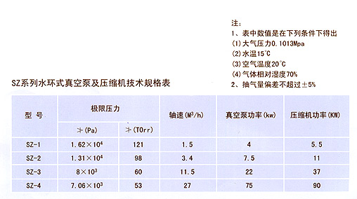 SZ系列水環真空泵及壓縮機是用來抽吸或壓縮空氣和其它無腐蝕性、不融于水、不含有固體顆粒的氣體以便在密閉容器中形成真空和壓力。但吸入氣體允許混少量液體。